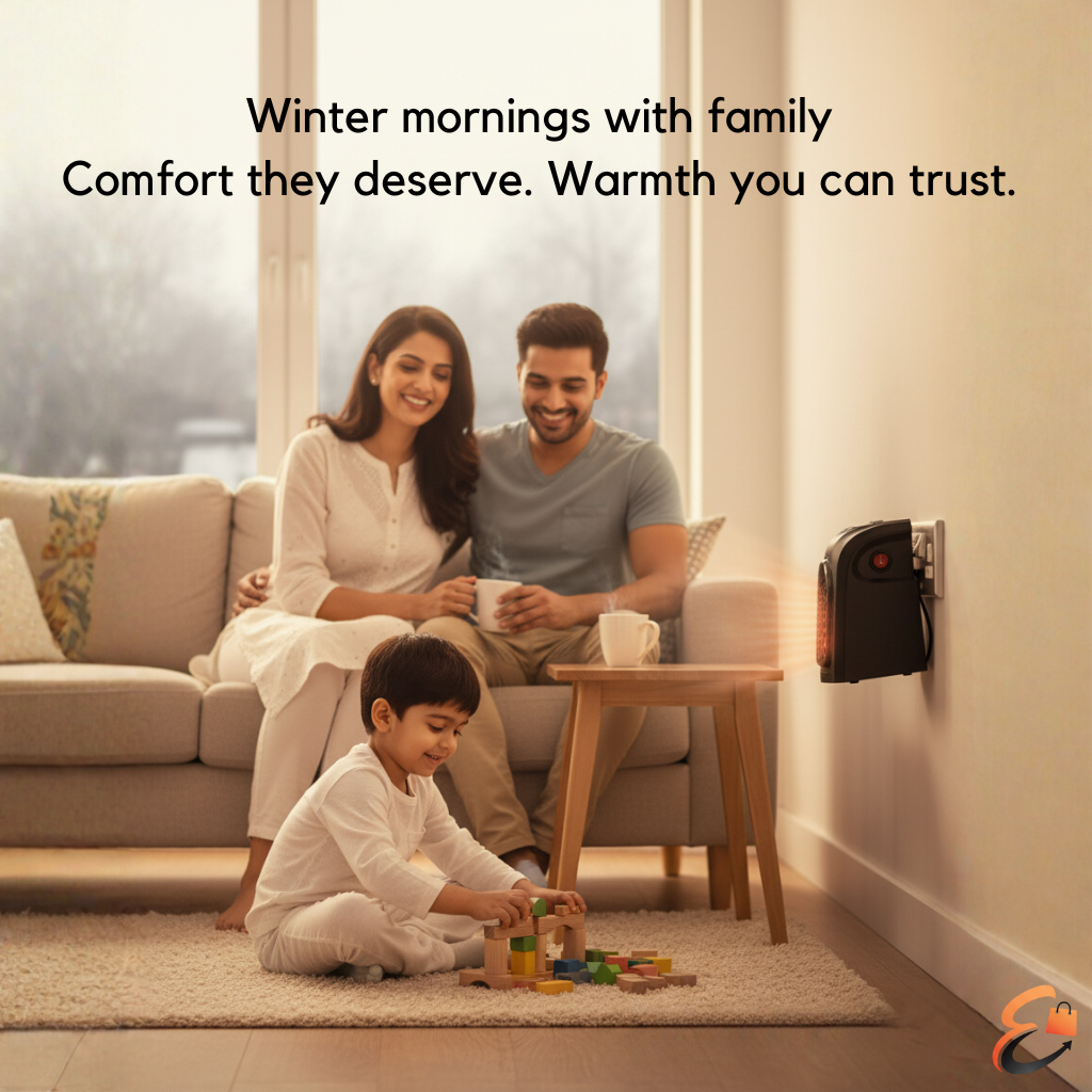 WarmPlug 400W Wall Heater | Plug-In Design | Instant 60-Second Heating | Digital LED Display | ISI Certified Safety | Overheat Protection | Silent Operation | Portable Room Heater | 2-Year Warranty | Black